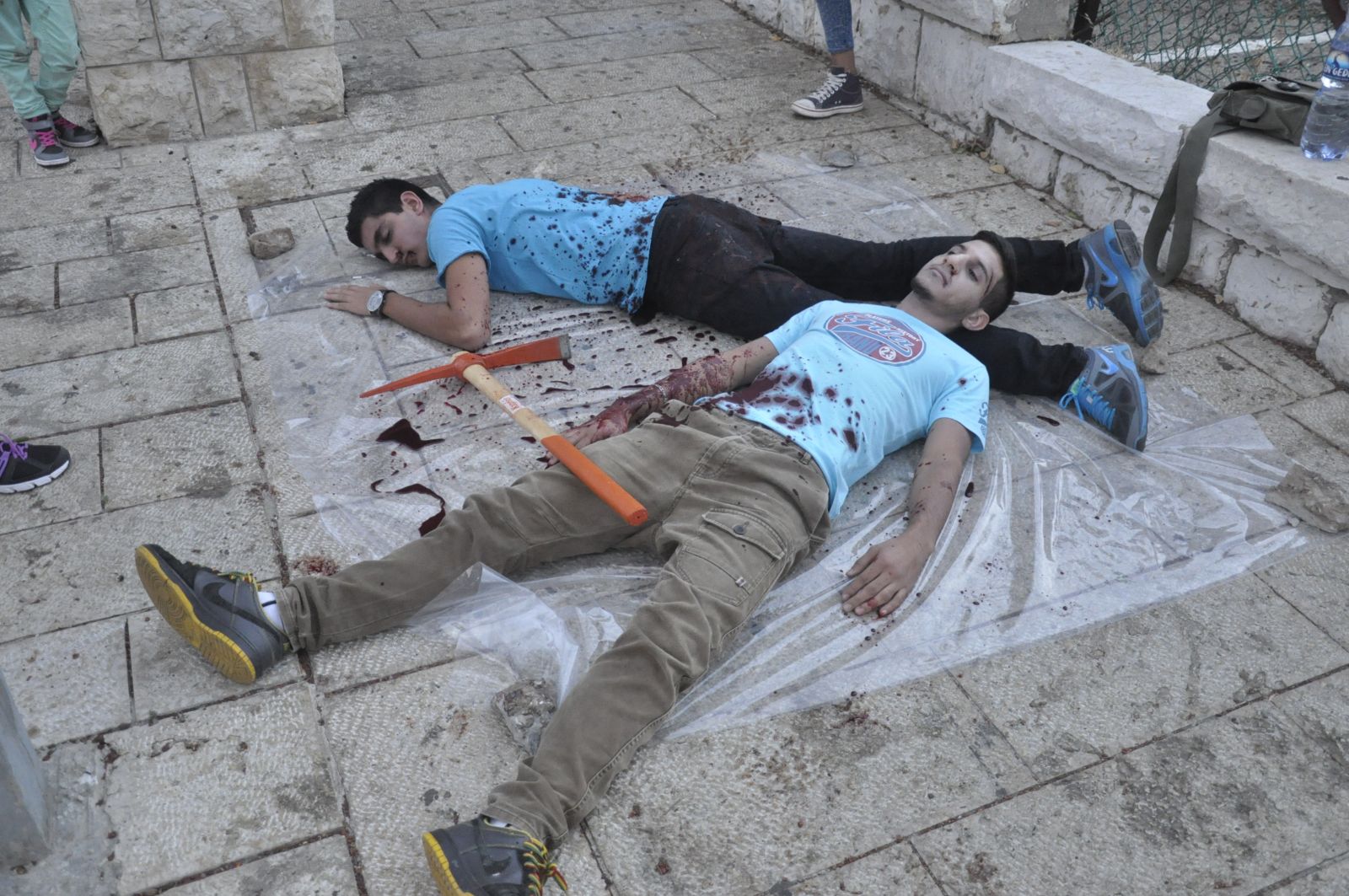 بداية من إشارة المرور، التي تقع ما بين مقهى "فتوش" ومقهى "الريّان"، إلى ساحة الأسير، امتلأت المساحات بـ "مواقع جرائم"، ضمت عروض مسرحيّة صامتة تماماً: جثث على الأرض عليها أثار جريمة مصطنعة من كدمات، ودم، وجروح، مرافقة بمقطوعات موسيقيّة على آلات متعددة، قدّمتها مجموعة من الموسيقيين. إضافةً إلى 4 محطّات إحتوت على عروض أفلام ضد العنف.