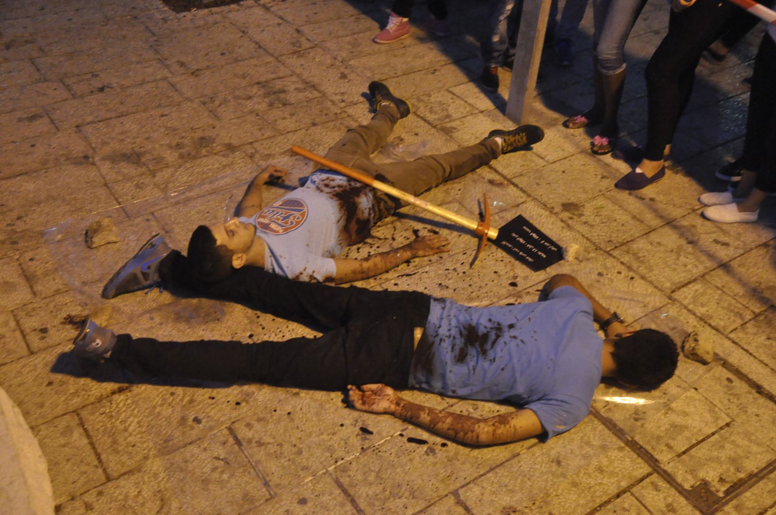 قبل أنّ تبدأ فعاليّات "أرق" -الحدث الفنّي الإحتجاجي- مساء الاثنين الماضي، 23.9.2013، في حيّ الألمانيّة، في حيفا، كانا قد تجولا كلّ من الممثلين الشابين: رامي جبارين، وعماد ياسين، بين بعض مقاهي الحيّ، وقاما بأداء مشهد مسرحي فيه عنف، بلا علم روّاد المقاهي، مما يصب في نوع من أنواع مسرح الشارع، حيث الجمهور لا يدري بكونه جمهوراً، وبالتالي كان الهدف هو خلق حالة رعب قصيرة، تحمل المتلقّي إلى الأسئلة، حول علاقته كفرد، وكجماعة، والمسؤوليّة في وضع حد لهذا العنف.