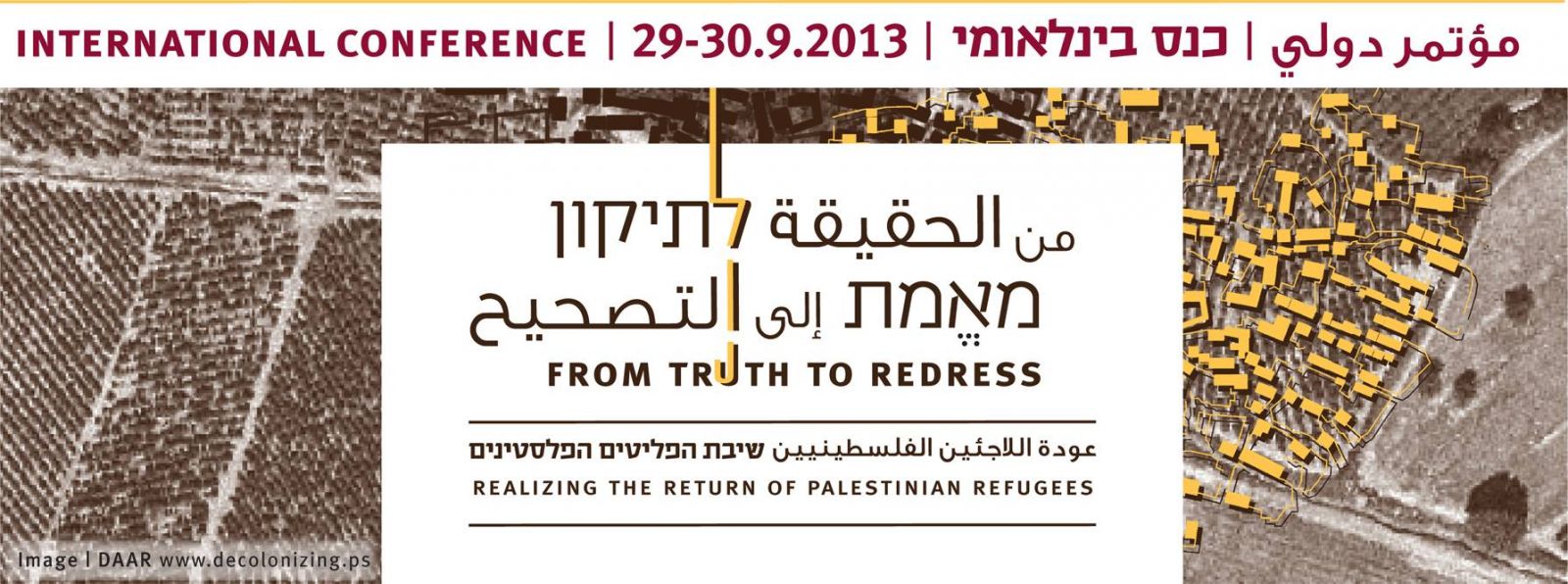 تنظّم جمعيّة "زوخروت" (ذاكرات)، مؤتمرًا دوليًّا، أيام الأحد والاثنين (29-30/09/2013)، في قرية الشيخ مونّس، سيتناول موضوع العودة الفعليّة للاجئين الفلسطينيين، انطلاقًا من الاعتراف، وتحمّل المسؤوليّة، والمباشرة بعمليّة تصحيح تاريخيّة، تستند على مبادئ العدالة الانتقالية .