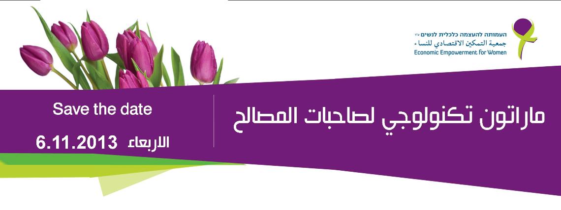 تنظّم جمعيّة "التمكين الاقتصادي للنساء"، يوم الأربعاء، 6 نوفمبر/ تشرين ثاني 2013، ماراتون تكنولوجي، لصاحبات الأعمال والمصالح، وذلك في مدينة الناصرة، في فندق "غولدن كراون".