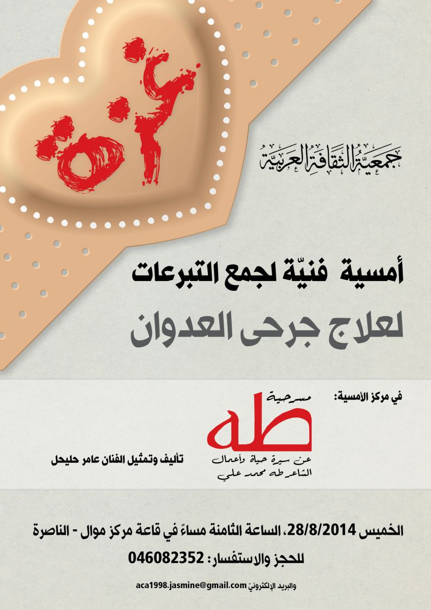» الخميس في الناصرة: أمسية فنيّة لجمع التبرّعات لعلاج جرحى العدوان
