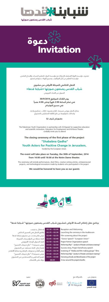 الثلاثاء: الحفل الختامي للمرحلة الأولى من مشروع "شبابنا قدّها"